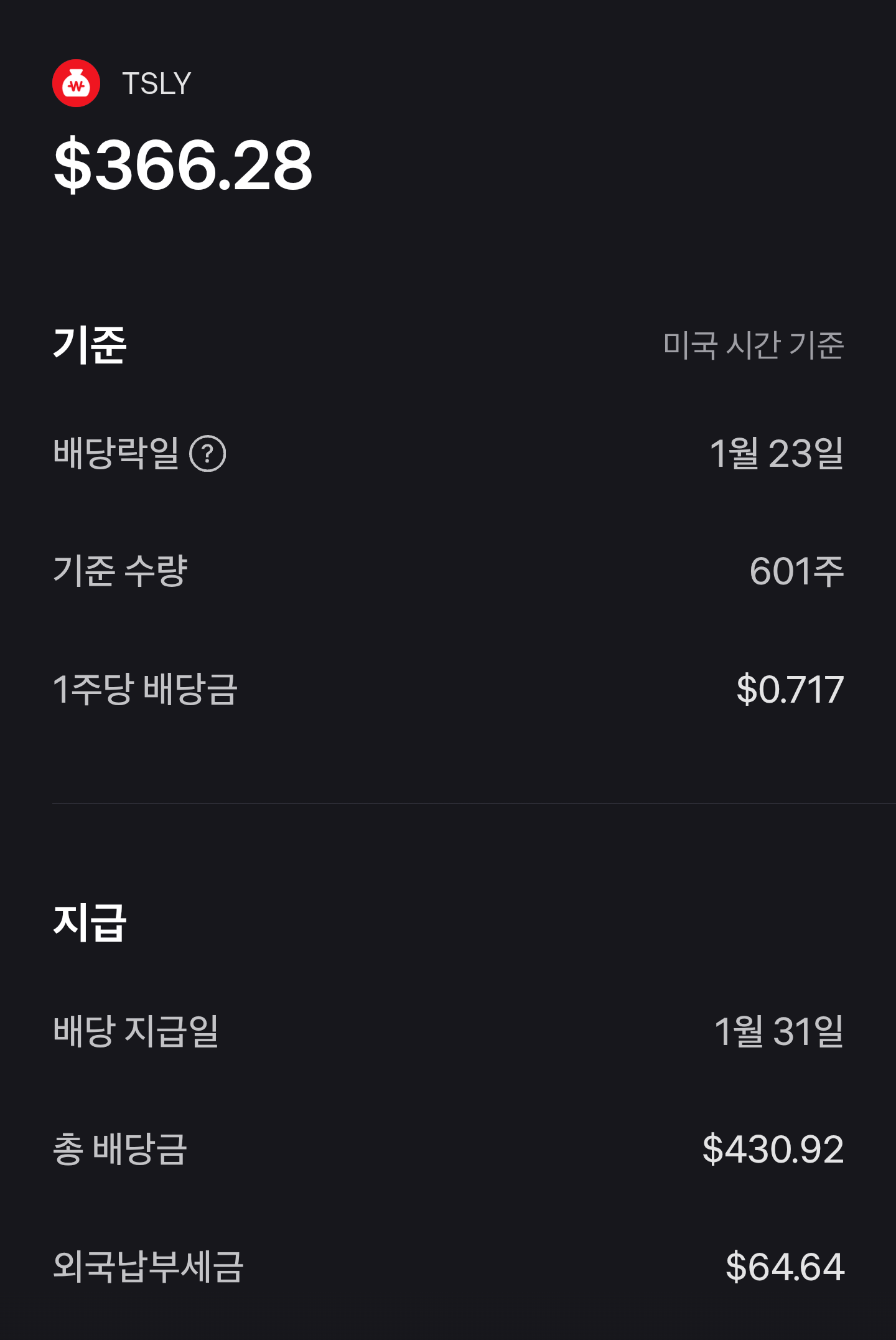 [25년 1월] TSLY 배당금 및 재투자 예측 (일드맥스 A그룹 배당)